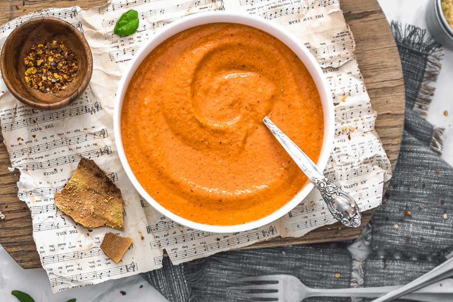 - 2. Add all remaining ingredients into the high-speed blender, except for the crushed red pepper flakes. Pulse until everything is smooth.