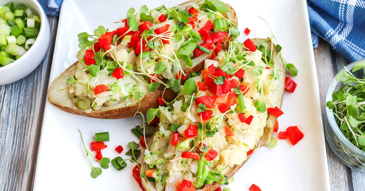 - 3. In a bowl, mash the potatoes with the milk, garlic, nutritional yeast, and chives.