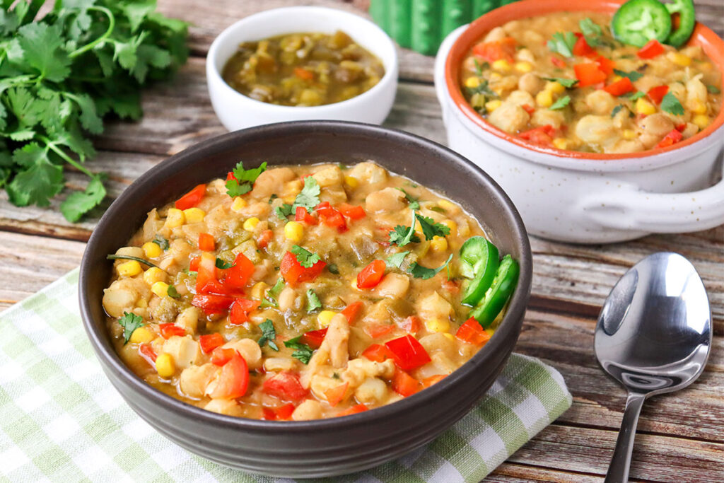 - 3. To the pot of vegetables, add the remaining ½ cup vegetable stock, the remaining half of the beans, the creamy bean mixture, and the rest of the ingredients. Cook over medium heat for 20–30 minutes or until vegetables are tender and broth is creamy.