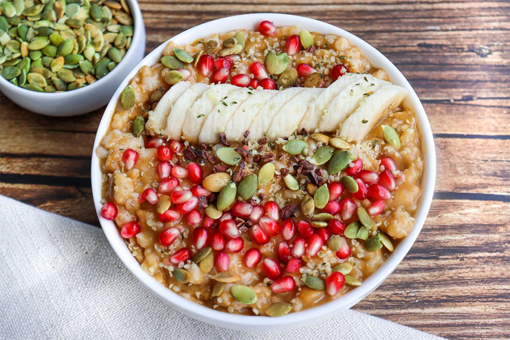 - 2. Combine the blended milk with the pumpkin puree and oatmeal in a medium bowl.