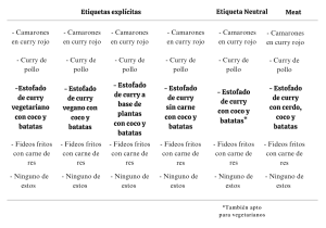 Los investigadores descubrieron que con el menú neutral, era 2.6 veces más probable que se seleccionara el curry vegetariano en comparación con una etiqueta que describiera el plato como vegetariano, vegano, basado en plantas o sin carne. Incluso entre los participantes que estaban reduciendo activamente su consumo de carne, el curry con la etiqueta neutral tenía más del doble de probabilidades de ser seleccionado (30.1 %) que el curry con la descripción explícita (14.4 %). Este estudio indica que la rotulación neutral, aunque quizás sea menos conveniente para los vegetarianos o veganos ya comprometidos, es el camino que se debe seguir cuando se intenta atraer a una audiencia más amplia.