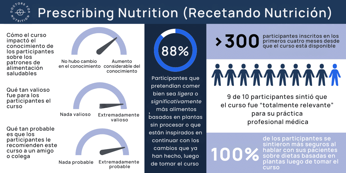- Después de participar en el curso, el 100 % de los participantes afirmaron sentirse más seguros al hablar con los pacientes sobre dietas basadas en plantas.