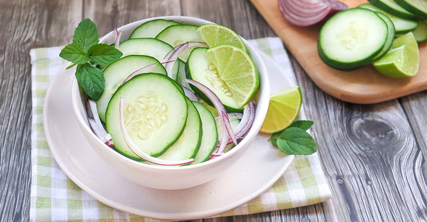 - 4. Vierte el aderezo preparado sobre los pepinos. Si lo deseas, añade la cebolla roja en rodajas finas a la ensalada. Remueve con cuidado para combinar todos los ingredientes.