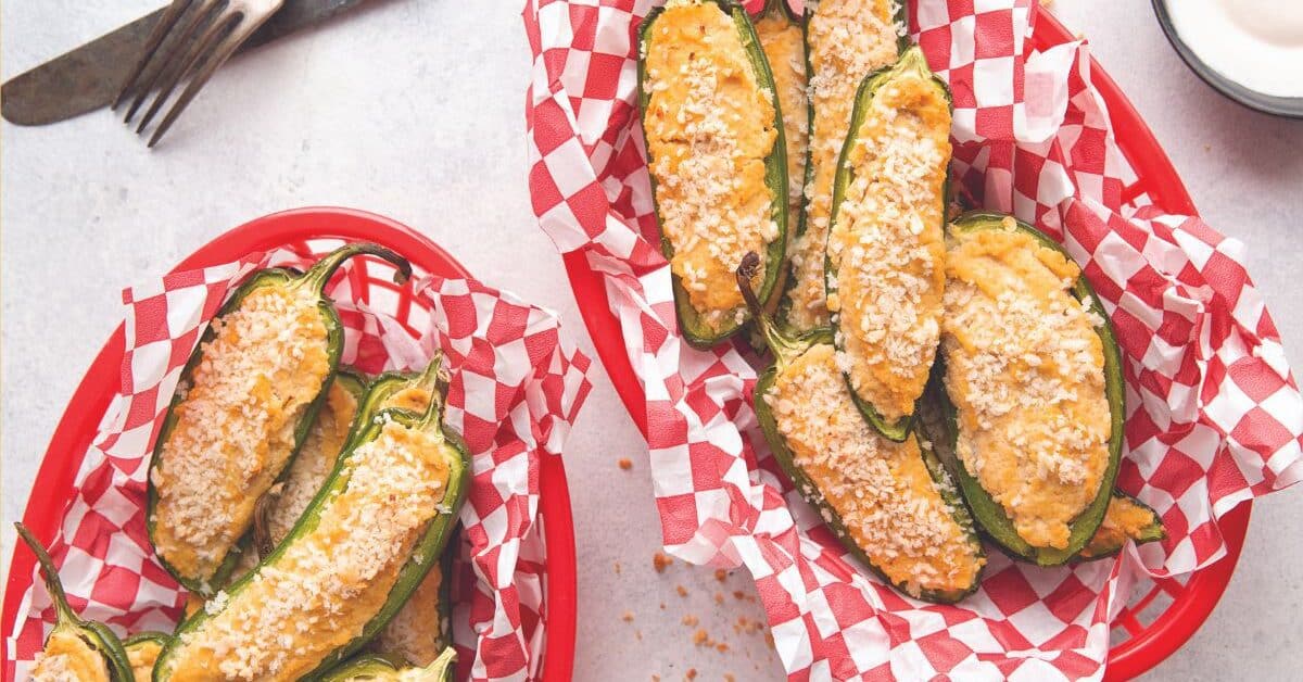 Stuffed jalapeño poppers never tasted so good! These creamy, smoky, slightly spicy mini peppers will have you reaching for more. Once you prepare the delicious plant-based cheesy filling, you can quickly fill your sweet or spicy peppers and bake. These are the perfect appetizers for any occasion.