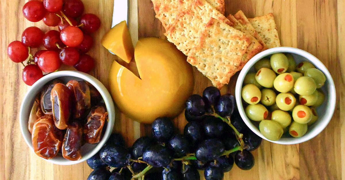 Serve this delicious garbanzo cheeze on a cheese board for your next party or gathering.