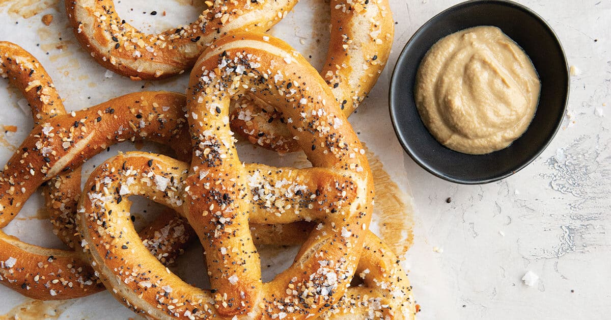 Soft pretzels are fun to create—and irresistible to eat. The baking soda bath and toppings give these pretzels their traditional flavor, making them a hit in our house. They’re soft and chewy on the inside and golden brown on the outside. Kids and adults love to roll the dough and form their own pretzels or unique shapes. Top them with anything you love for a great snack or appetizer.
