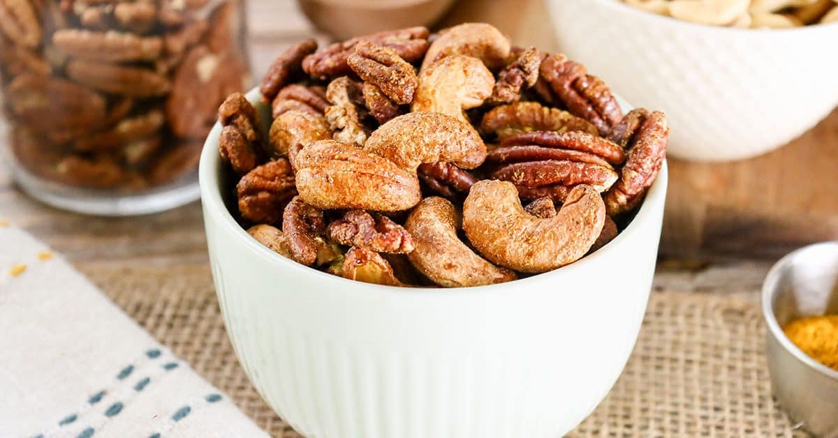 This simple yet delectable snack combines the natural richness of raw pecans and cashews with a tantalizing blend of sweet and spicy elements. A drizzle of maple syrup adds a hint of sweetness, while curry powder and cayenne pepper provide a fiery kick that'll awaken your taste buds.
