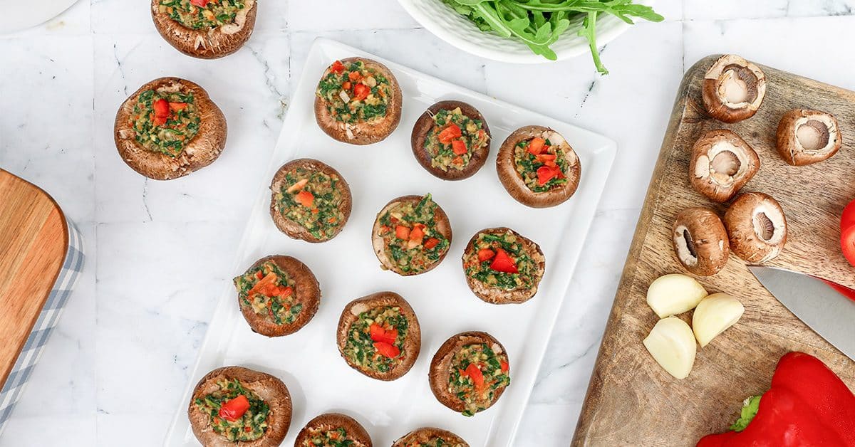 A savory white bean and spinach filling seasoned with garlic, onions, and white wine, are sure to make these stuffed mushrooms a hit at your next party. In fact, they’re so scrumptious, you’ll probably forget they’re also packed with nutrients. You might want to make a double batch, because they go fast!