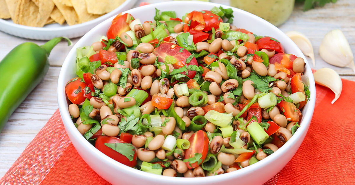 This is a wonderful summer salad that’s full of fresh garden flavors and nutrient-dense ingredients. The jalapeño peppers give it a little kick that pairs deliciously with the earthy sweetness of the black-eyed peas.