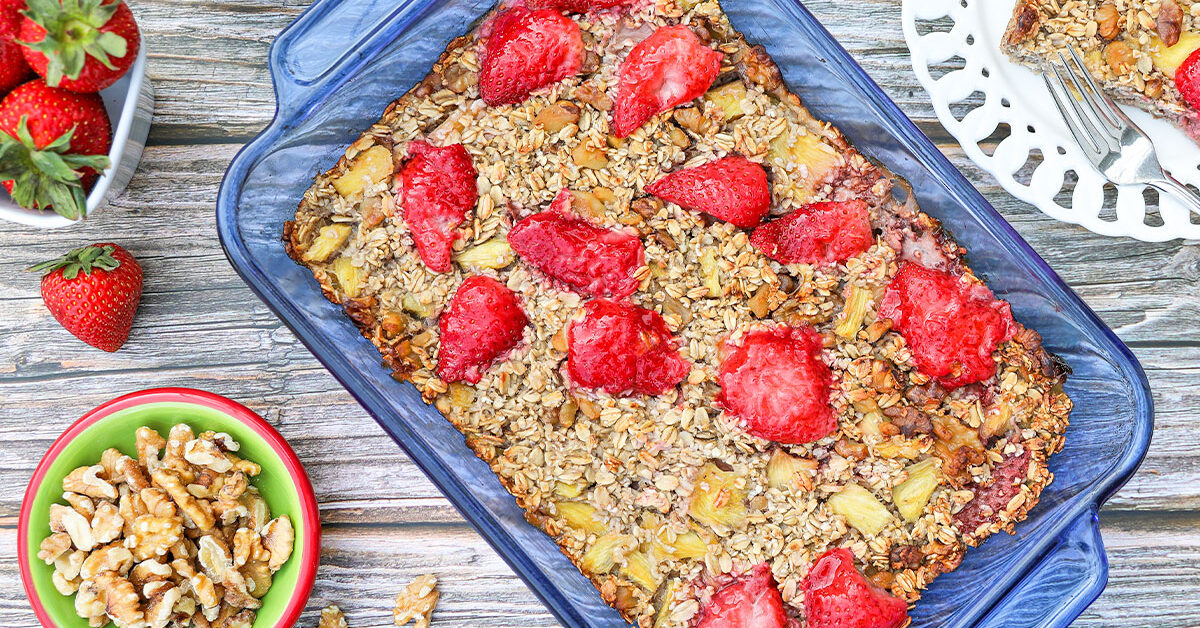 This fruit-sweetened pineapple berry oatmeal bake is good for breakfast, snacks, or even dessert. It’s packed with satiating oats and antioxidant-rich berries, but sweet enough to feel like a treat!