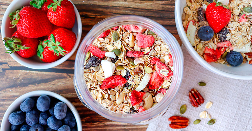 Muesli is a breakfast cereal made from rolled oats, dried fruits, nuts and seeds, and sometimes other grains. It is easy to prepare and nice to have on hand. Try pairing it with chopped fresh fruit and unsweetened non-dairy milk.