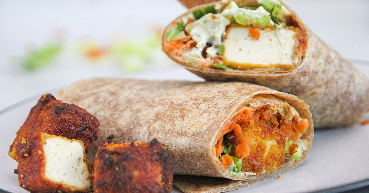 For a delicious, healthy, barbecue-inspired meal, look no further. These plant-based barbecue wraps are filled with tender, crispy pieces of popcorn "chicken" made from tofu. This combination of pineapple barbecue sauce, fresh vegetables, and dairy-free ranch dressing is mouthwatering.