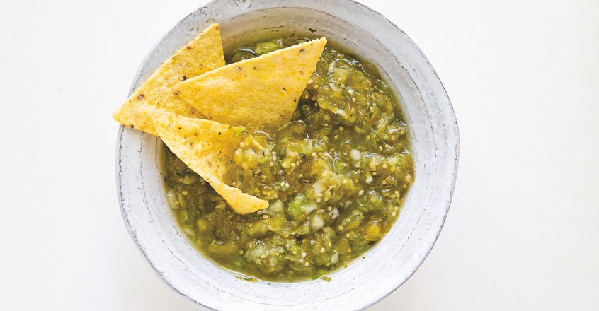 Tomatillos—also known as “Mexican husk tomatoes”—are bright and somewhat acidic. Cilantro complements their flavor profile really well.