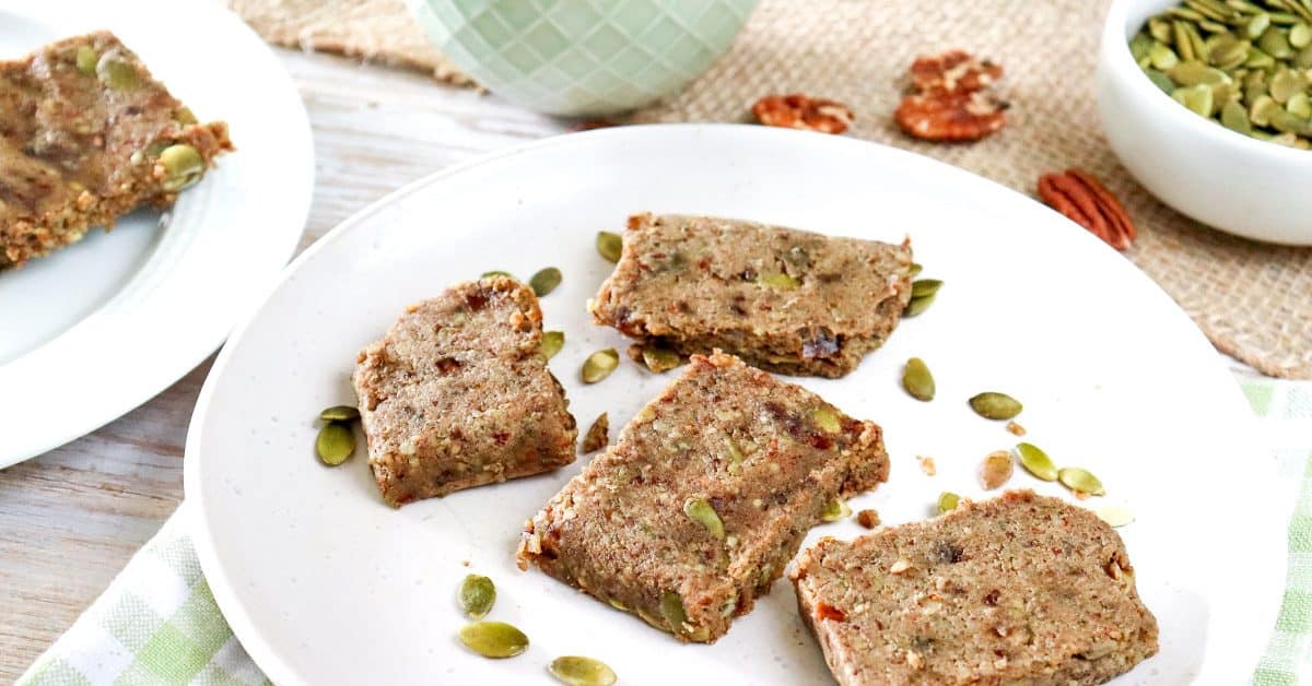 These plant-based granola bars are super nutritious, packed with whole ingredients like pecans, pumpkin seeds, and dates, and without refined grain, sugar, or syrup. They make a great gluten- and oil-free snack.