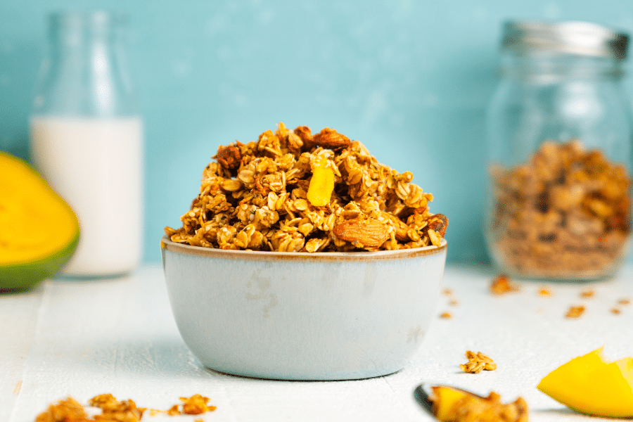 You’ve had granola, but have you ever had granola with mango? This mixture comes together in a snap and offers a sweet but substantial snack on the go whenever you need a boost.