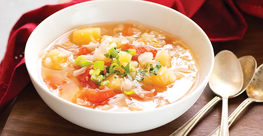 This soup brings together several vivid and dynamic flavors. The pineapple will remind you of tropical destinations, and the lime adds that touch of acidity, but there’s also a more mild sweetness to support and balance them out.