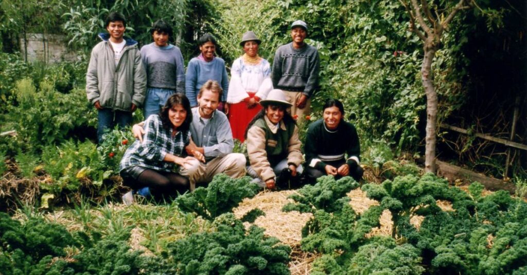 Jeff was working with PRR as the technical coordinator of the Permacultura Cayambe (PC) project to help address problems of land degradation and outmigration from their communities. In practice, they focused on four main components: 1) a nursery and training center; 2) a community school; 3) an ecotourism project that helped support the school; and 4) courses, workshops, and resident apprenticeships for local youth and visiting students. The school was built in the region’s most marginalized community by working in mingas (a Kichwa word that describes collaborative community work).