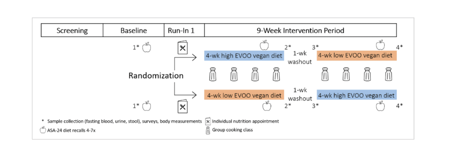 - Krenek AM, Mathews A, Guo J, et al. Recipe for Heart Health: A Randomized Crossover Trial on Cardiometabolic Effects of Extra Virgin Olive Oil Within a Whole-Food Plant-Based Vegan Diet. J Am Heart Assoc. 2024;13(15):e035034. doi:10.1161/JAHA.124.035034