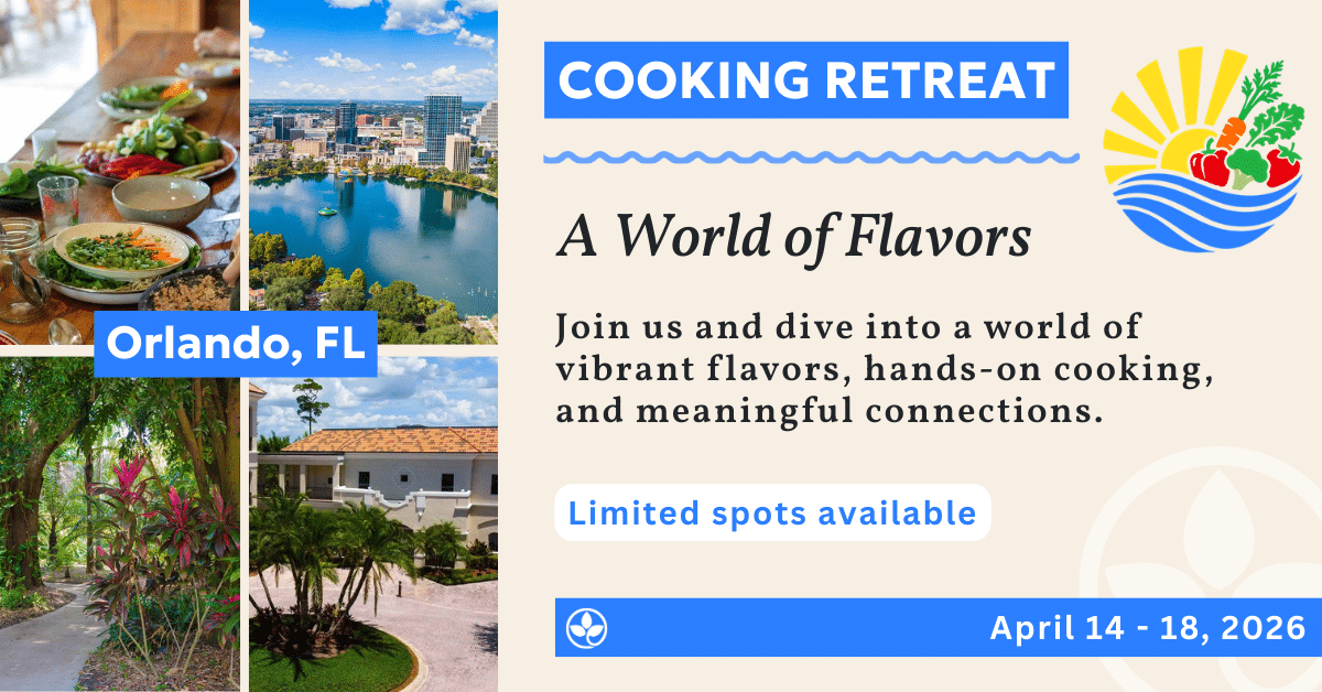 Step away from daily routines and immerse yourself in a four-night, three-day culinary retreat where whole food, plant-based cooking meets global inspiration. Hosted at the beautiful Pioneers campus in Orlando, Florida, A World of Flavors Cooking Retreat blends education, creativity, and restoration in a warm, welcoming environment.