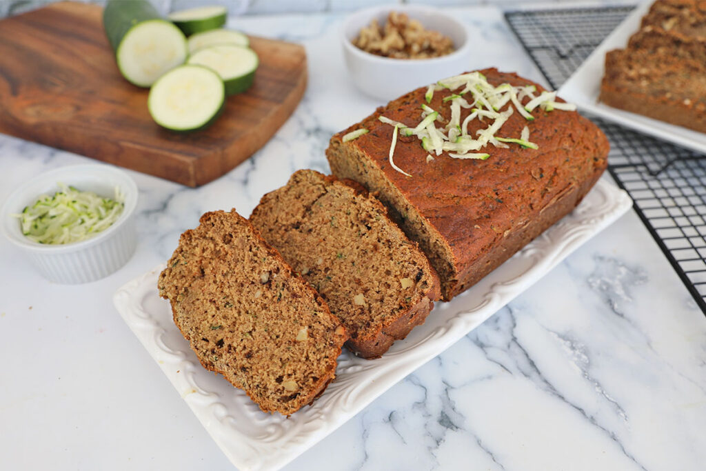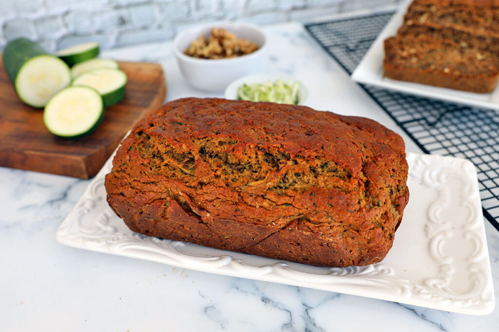 - 7. Spoon batter into non-stick loaf pan. Bake on center rack of oven for approximately 50 minutes, or until tooth pick inserted into the center comes out clean. Turn bread out onto a cooling rack and let cool completely before slicing or storing.