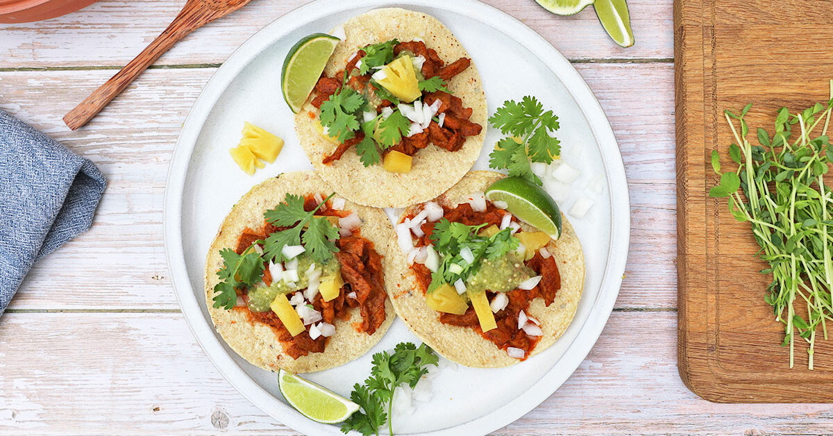 - 7. To build the tacos, spoon the cauliflower-walnut filling into the taco shells, then add the mango or pineapple slaw. Top with the peanut sauce and your choice of garnish.