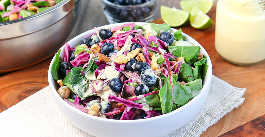 - 2. Mix the salad ingredients in a bowl. Top the salad with the tahini dressing.